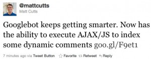 Si può dire (forse da un po’) che la fase del Web 2.0 è terminata. Google indicizza anche AJAX e JavaScript a quanto scrive Matt Cutts su Twitter. Dunque non solo contenuti dinamici ma anche i commenti pubblicati sui siti web attraverso Facebook e Disqus finiscono nei risultati di ricerca di Google. La domanda ora è: cosa ce ne facciamo? Come e dove li sistemiamo nel web semantico?