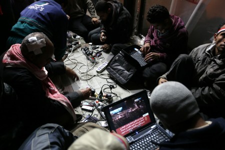Mi hanno colpito due cose: la prima è questa immagine di blogger egiziani a Tahrir Square che con i loro laptop informavano gli altri cittadini ed il mondo esterno.