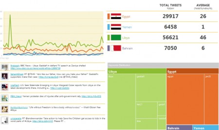 La seconda è l’utilizzo di Twitter monitorato dall’Al Jazeera Twitter Dashboard che misura la quantità dei messaggi: e se fosse in grado in futuro di valutarne anche la qualità geolocalizzando i tweet?