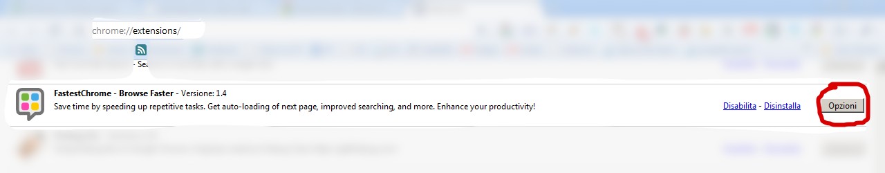 Per attivarla, clicca su “Install” per installare l’estensione su Chrome e vai nelle Opzioni di FastestChrome (si trovano in Strumenti-Estensioni):