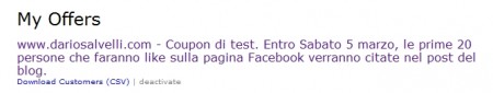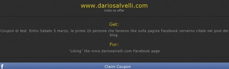 Cliccando poi su “Mark as Used” è possibile condividere il coupon agli amici: ovviamente l’utente può usare il coupon una sola volta, a meno che non si riesca ad abbindolare l’applicazione non vale fare il furbo e premere “mi piace” e “non mi piace più” di continuo. ;)