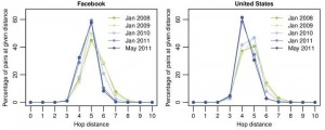 A proposito della teoria dei sei gradi di separazione del 1960 alcuni scienziati dell’Università degli Studi di Milano insieme a Facebook hanno affermato che il numero medio è 4,74 e non più 6: a dimostrarlo ci sono i risultati di una ricerca condotta sui 721 milioni di utenti del social network (più del 10% della popolazione mondiale).