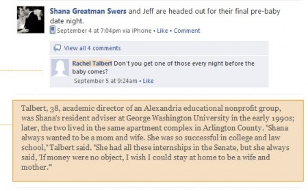 E se Novella 2000 venisse realizzato usando foto, video, messaggi di Facebook? Il Washington Post ci prova raccontando la storia un po’ tormentata della maternità di Shana Greatman Swers (una sconosciuta donna di 35 anni) e della sua nuova famiglia vissuta attraverso gli occhi di Facebook.