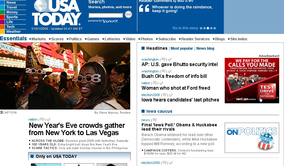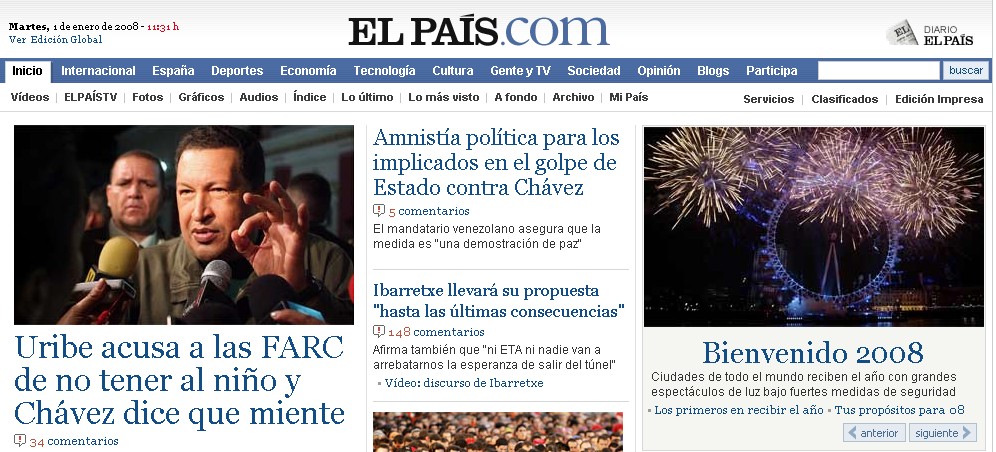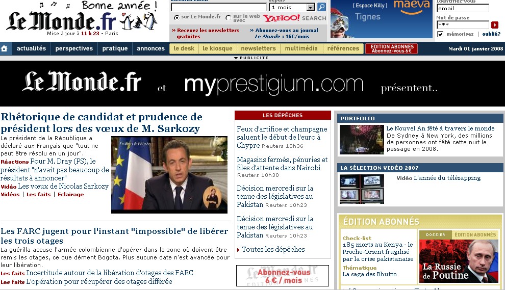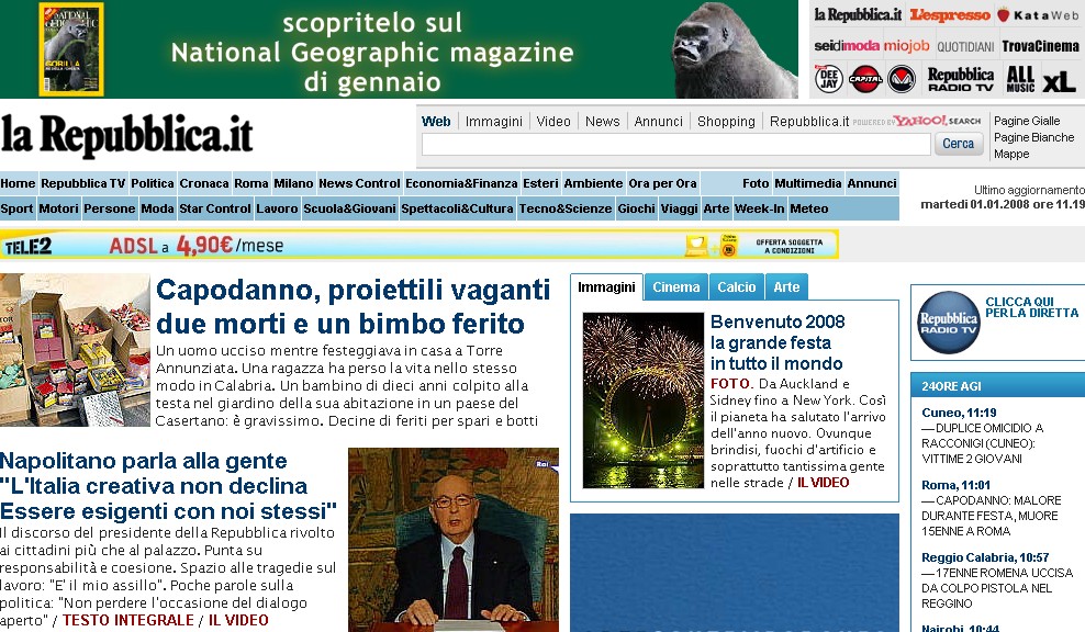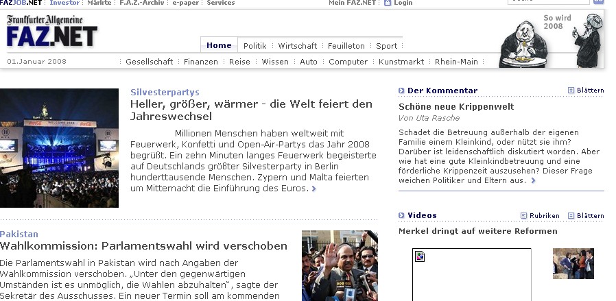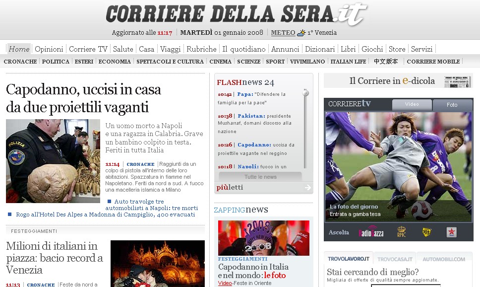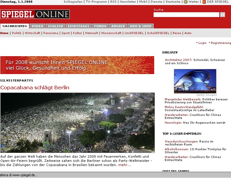 Il primo Gennaio affiora la pochezza degli articoli con informazioni patinate come le foto dei festeggiamenti del nuovo anno, appannaggio di quasi tutti i giornali, le notizie riguardo il capodanno argomento principale soprattutto dei giornali Europei in queste ore iniziali mentre in newspaper come New York Times, Time, International Herald Tribune, avviene il contrario probabilmente perchè di più ampio respiro internazionale.
