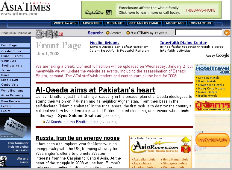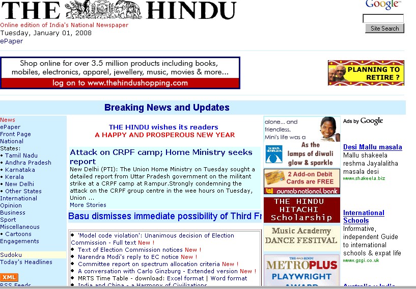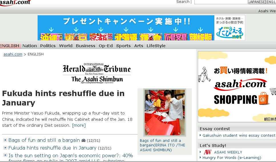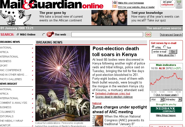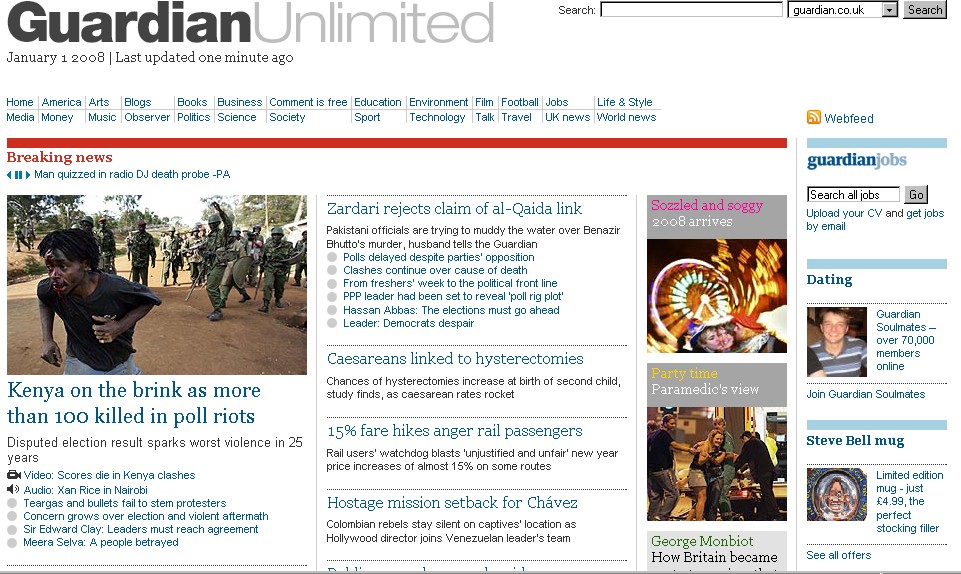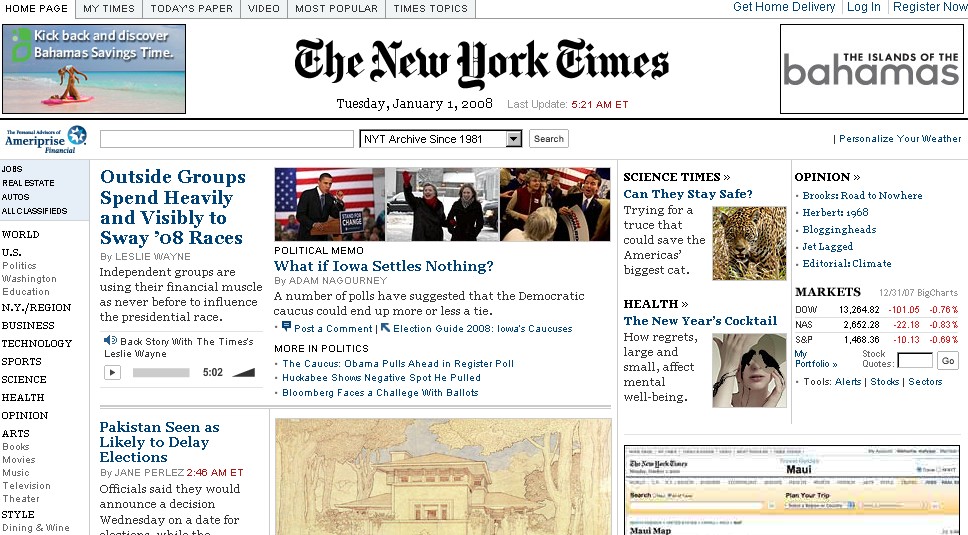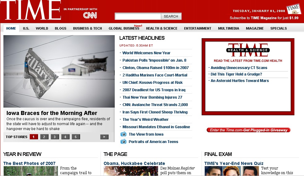Il primo Gennaio affiora la pochezza degli articoli con informazioni patinate come le foto dei festeggiamenti del nuovo anno, appannaggio di quasi tutti i giornali, le notizie riguardo il capodanno argomento principale soprattutto dei giornali Europei in queste ore iniziali mentre in newspaper come New York Times, Time, International Herald Tribune, avviene il contrario probabilmente perchè di più ampio respiro internazionale.