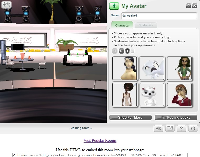 Disponibile solo per Windows Vista/XP (ed Internet Explorer e Mozilla Firefox), Lively è ancora in versione Beta ma permette già di creare degli avatar virtuali da usare per chattare con gli amici: è possibile ad esempio inserire delle stanze virtuali sul nostro sito per chattare o guardare video e foto.