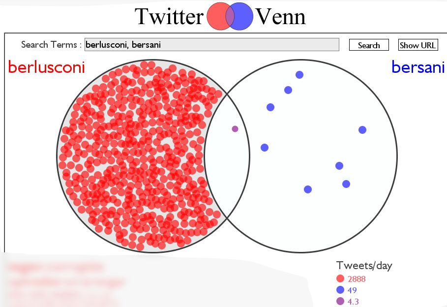 A pensarci bene BersaniTweet potrebbe essere un’unità di musira della popolarità in Rete: ho valutato un recente Twitter Venn e la situazione su Twitter di Bersani (per quello che conta) sembra sia disperata.