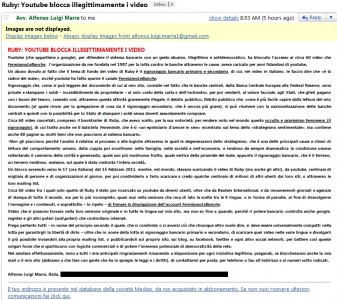 Un portavoce di Google Italy mi comunica via email perchè hanno chiuso il canale YouTube del signor Alfonso Luigi Marra: