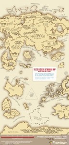 La mappa del mondo dei social network aggiornata al 2010. Da notare la presenza dell’impero di Google e il triangolo dei video virali…