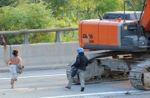 Nudo e con i poliziotti di fronte dicevo qualche tempo fa. Questa è una foto degli scontri NO Tav in Val di Susa, l’accostamento è volutamente provocatorio. Non mi sono fatto ancora una posizione ben precisa e non credo che me la farò facilmente perchè in questo caso è difficile stare da una parte o dall’altra. E però auspicherei almeno che non si usasse mai la violenza (da qualsiasi parte la si veda) quando bisogna decidere su questioni delicate (in cui entrano in gioco il progresso e l’ambiente) in un Paese che dovrebbe essere civile e democratico.