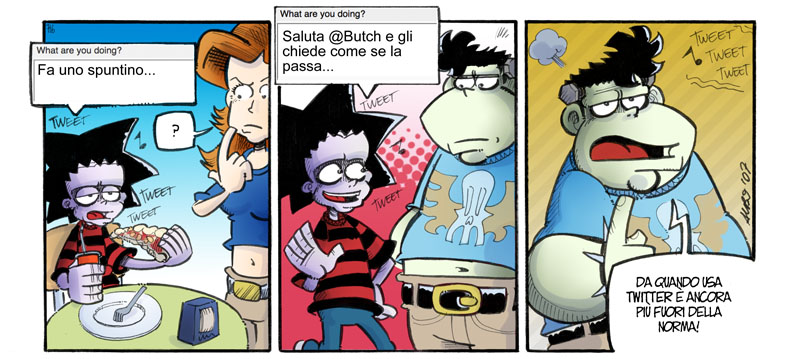 La striscia sopra realizzata da Albo ben sintetizza lo stato di assuefazione di servizi come Twitter.