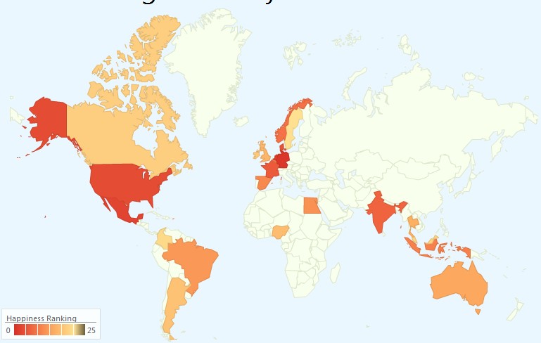Alex Davies è uno studente: usando un metodo di indagine che non credo sia molto affidabile ha fatto una “sentiment analysis” cercando di capire quali sono i Paesi più felici attraverso Twitter.