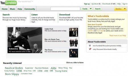Un mashup tra YouTube e Last.fm con il quale scaricare gratuitamente 5 canzoni al giorno: YouScrobble è qualcosa di fantastico e, quindi, al limite della legalità.